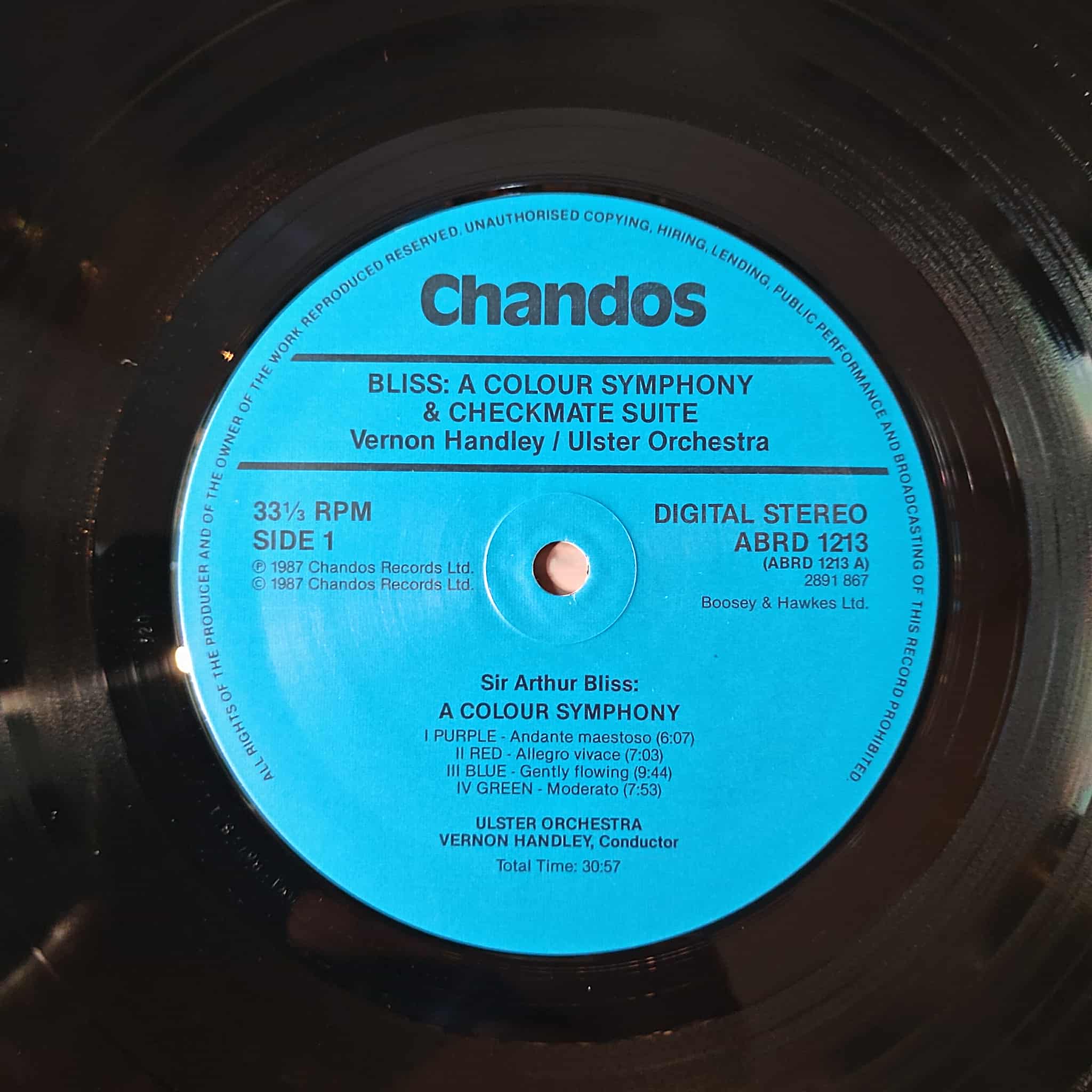 Đĩa Chandos UK 1987, NM.