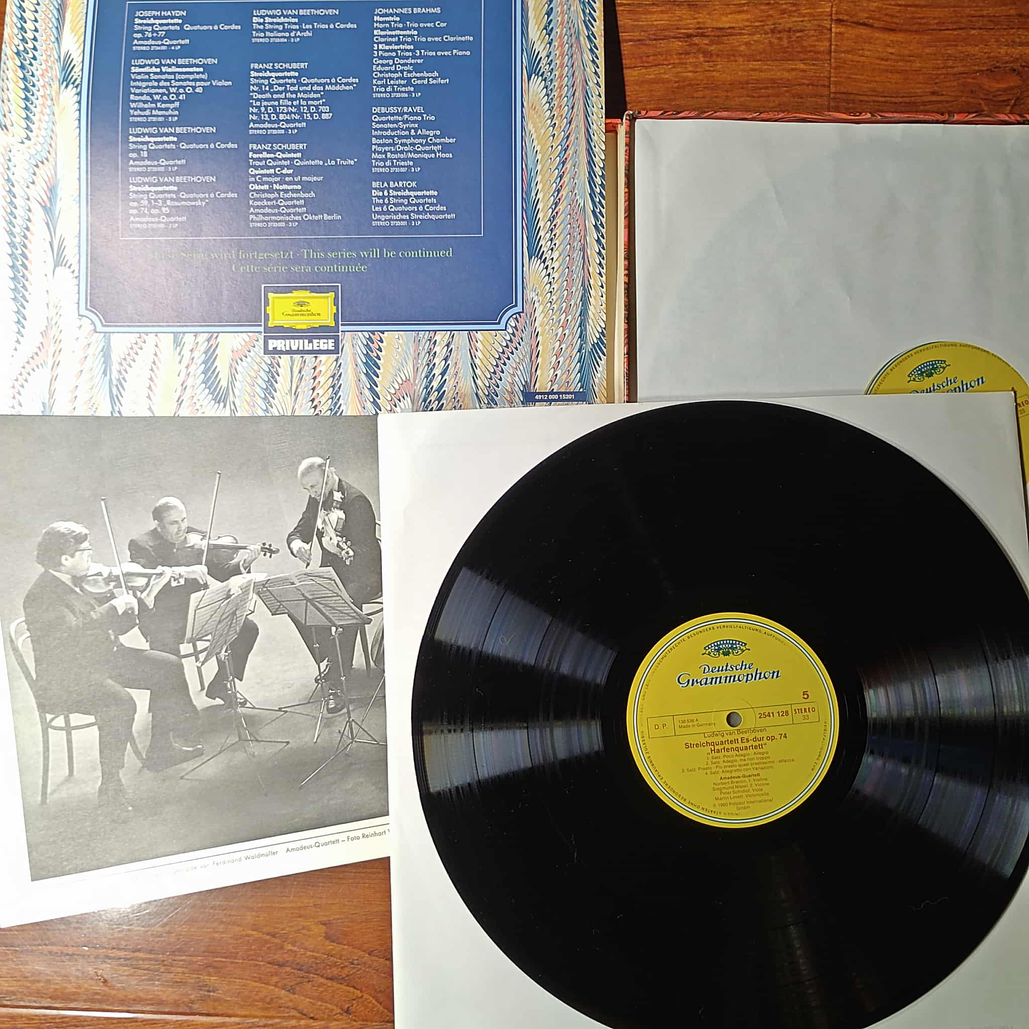 Box 3xLP Amadeus Quartet trình diễn bộ 3 tứ tấu Rasumovsky & tứ tấu cho đàn hạc của Ludwig Van Beethoven.