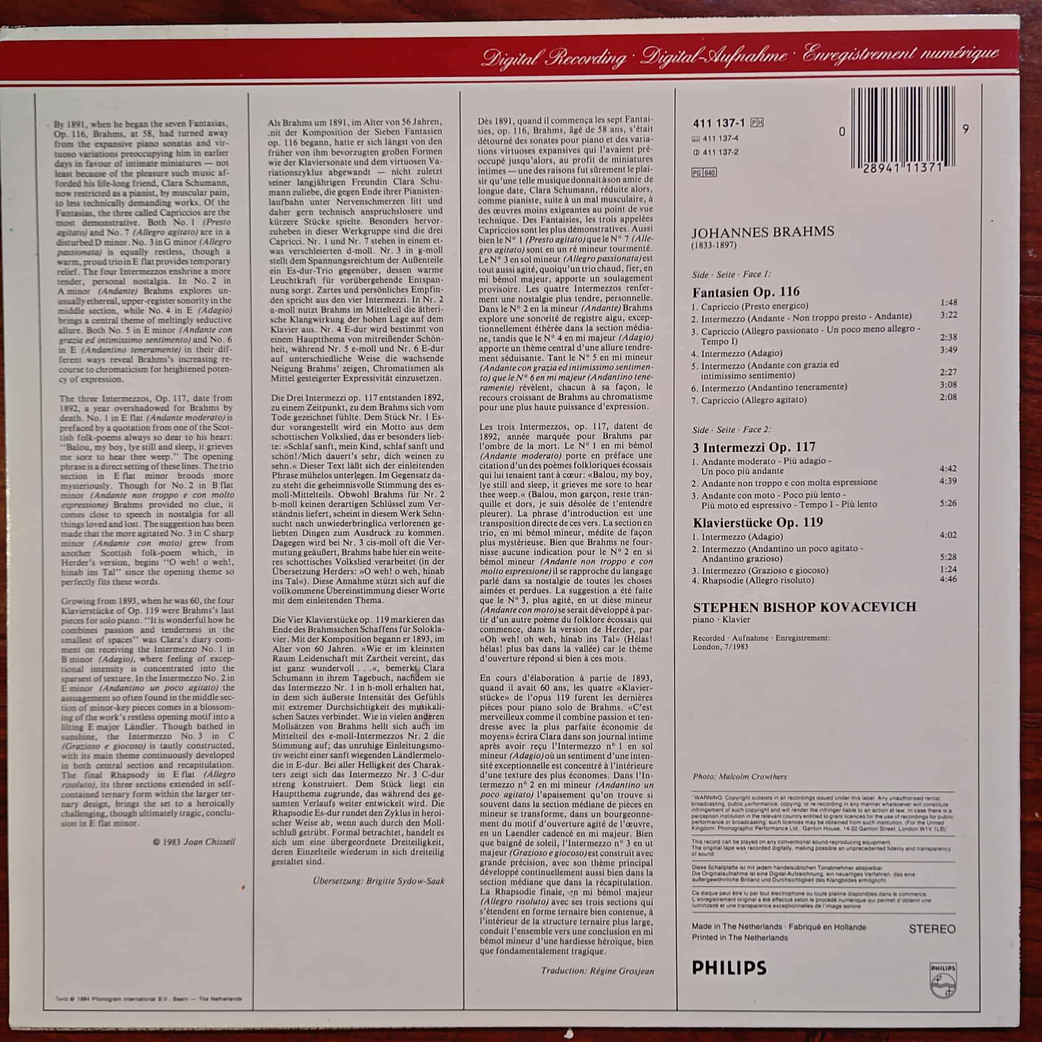 Pianist xuất sắc người Mỹ Stephen Bishop-Kovacevich độc tấu Pieces / Fantasies / Intermezzi của Brahms.