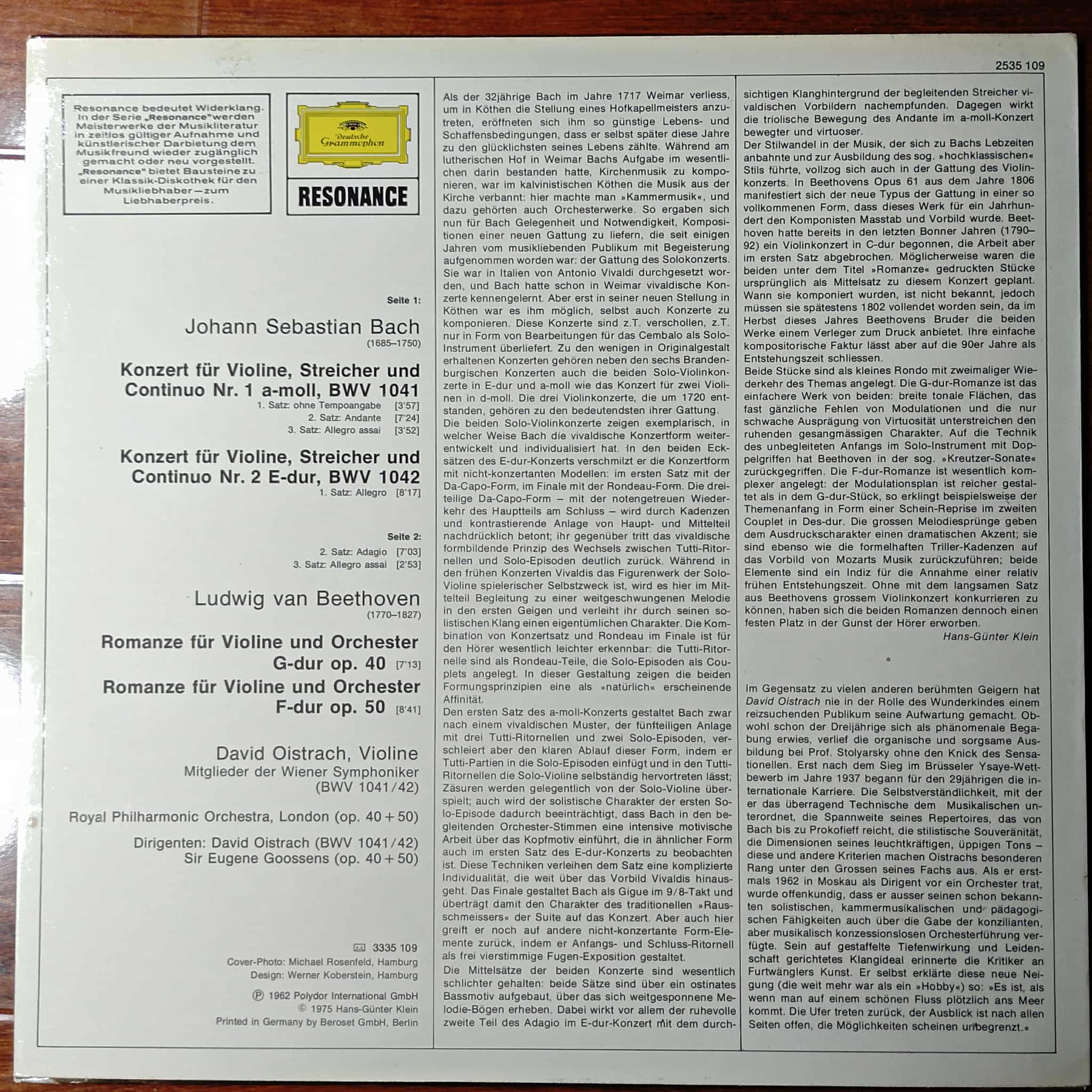 David Oistrakh trình diễn 2 violin concertos của Bach & 2 violin romances của Beethoven.
