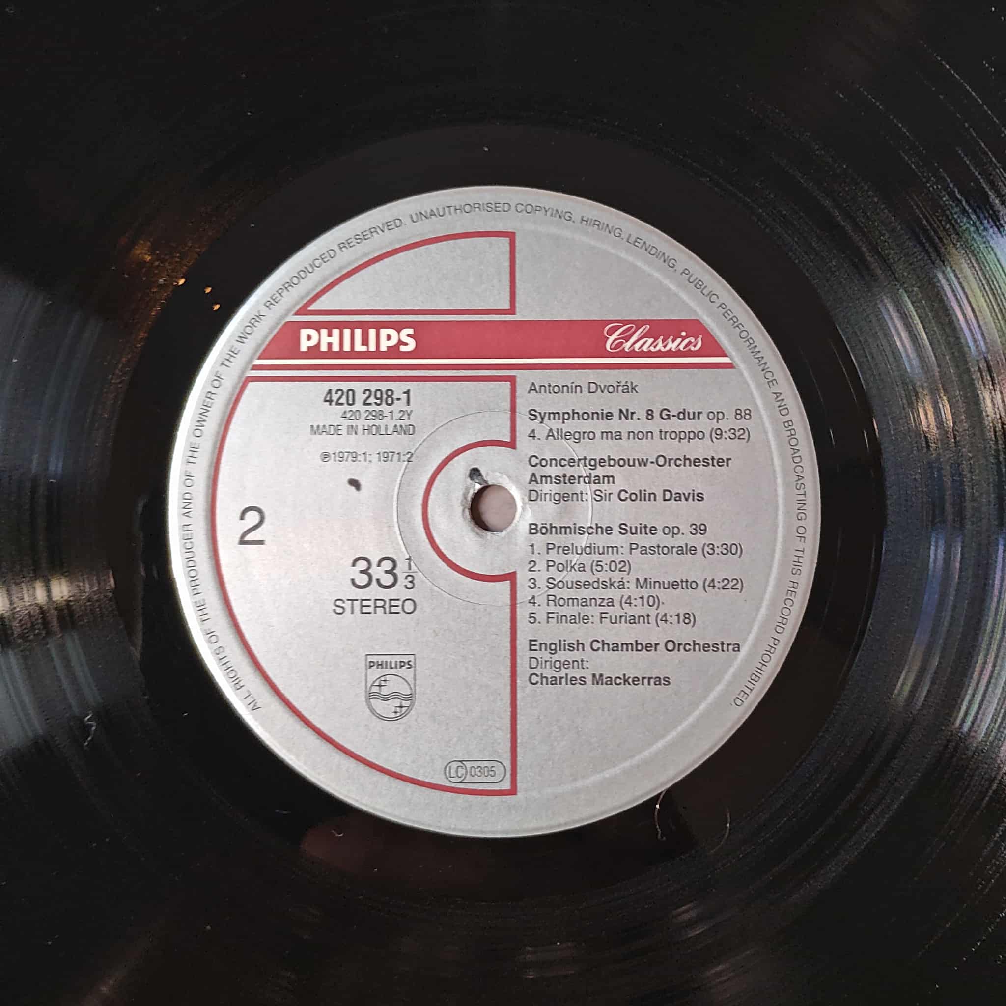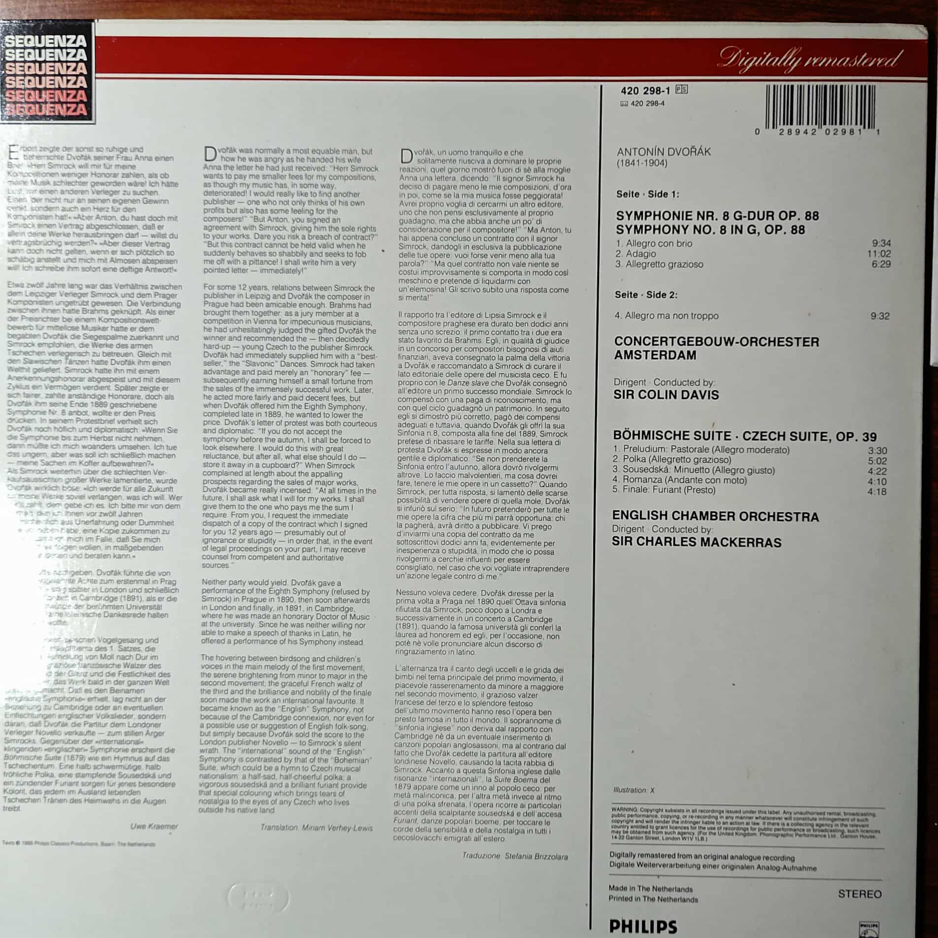 Giao hưởng số 8 & Bohemian Suite của Dvořák, trình diễn bởi Sir Colin Davis & dàn nhạc Hoàng gia Hà Lan Concertgebouw Orchestra, Amsterdam và Sir Charles Mackerras & dàn nhạc thính phòng Anh Quốc.