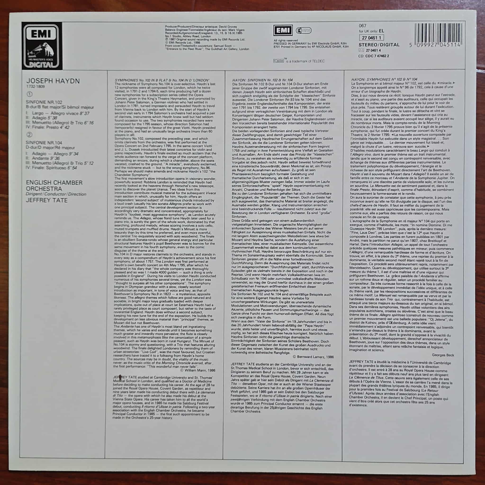 Hai giao hưởng nổi tiếng của Haydn, trình diễn bởi dàn nhạc thính phòng Anh English Chamber Orchestra & nhạc trưởng Jeffrey Tate.