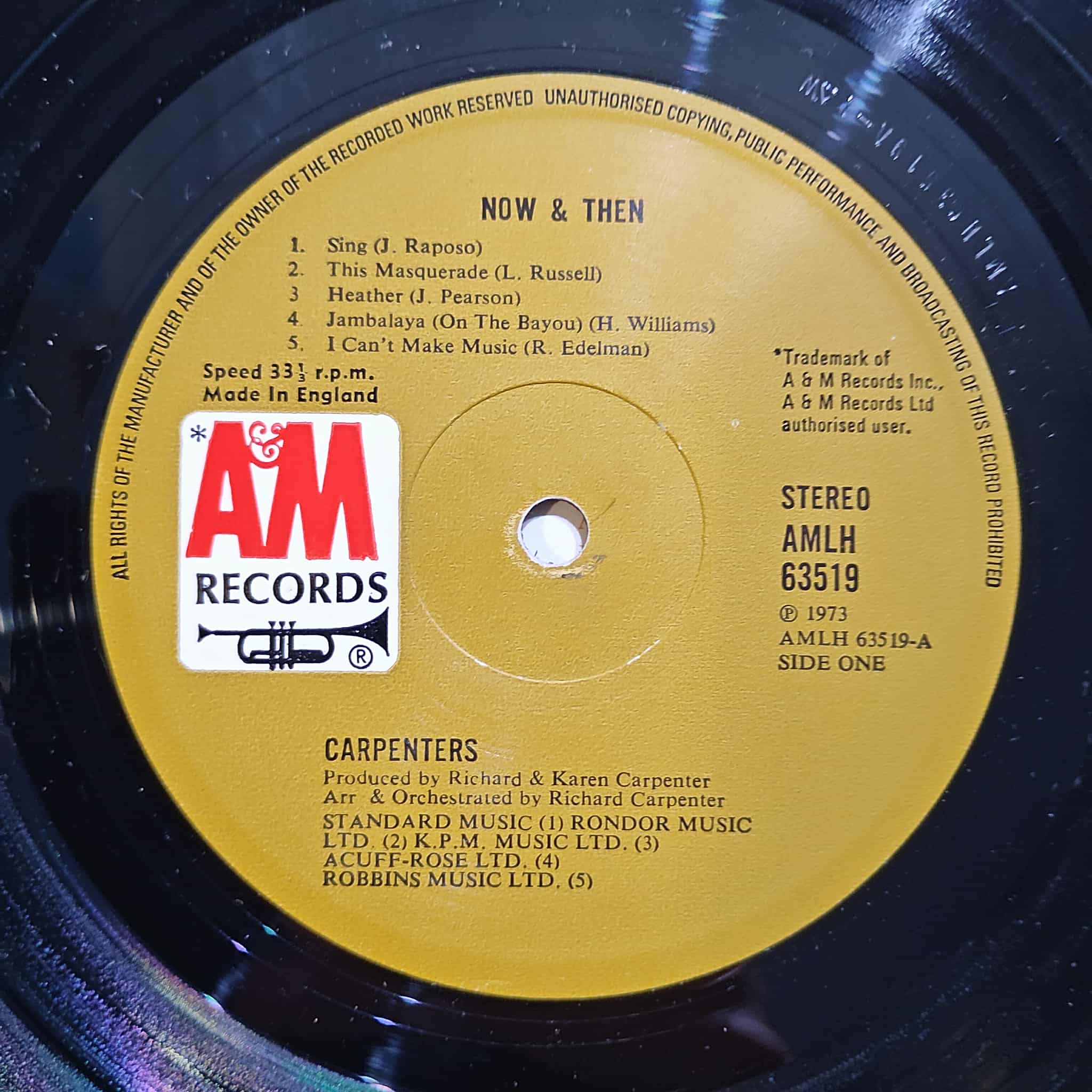 Album Now & Then của Carpenters với Sing, Jambalaya & Yesterday Once More.