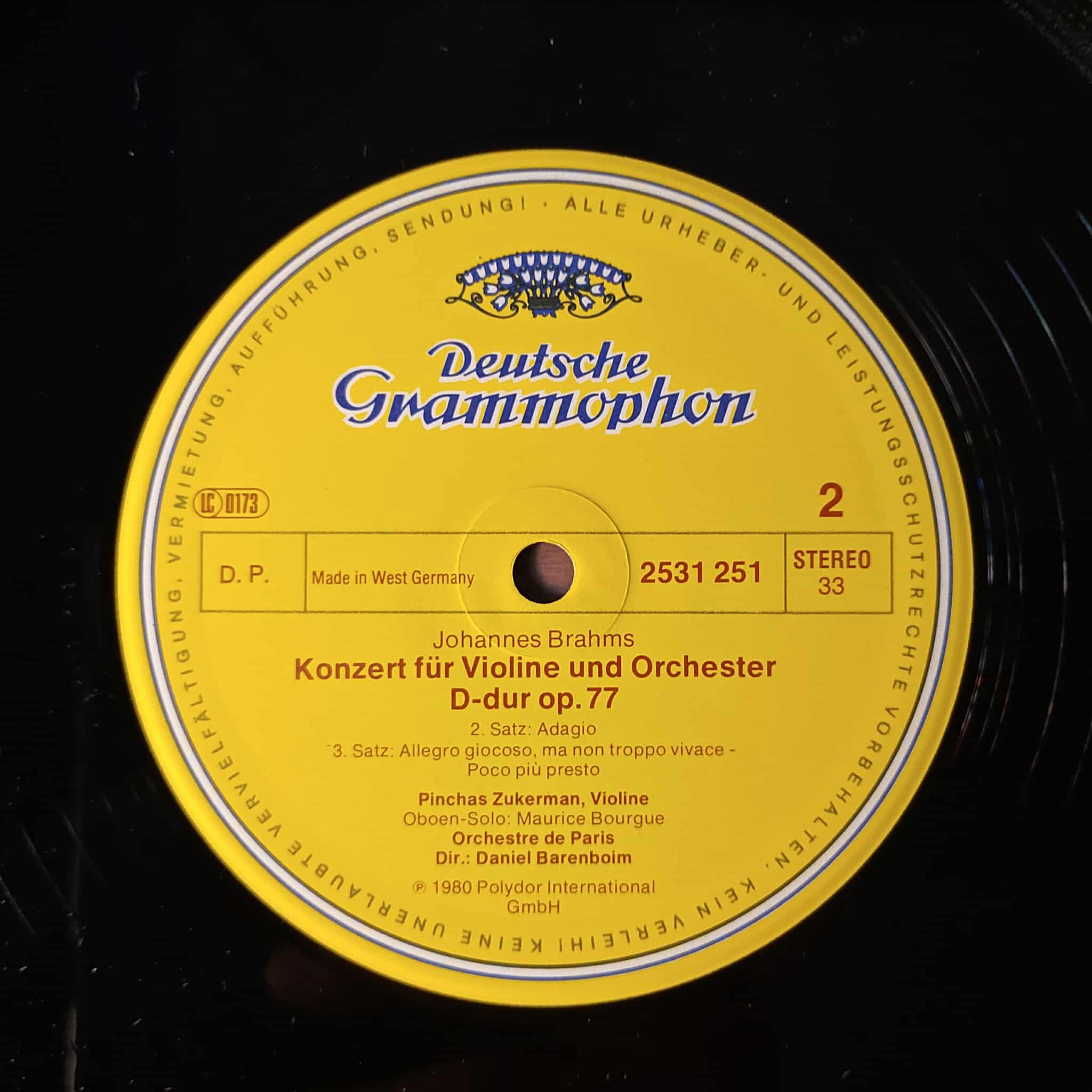 Violin Concerto của Johannes Brahms, bản thu của Pinchas Zukerman và Daniel Barenboim.