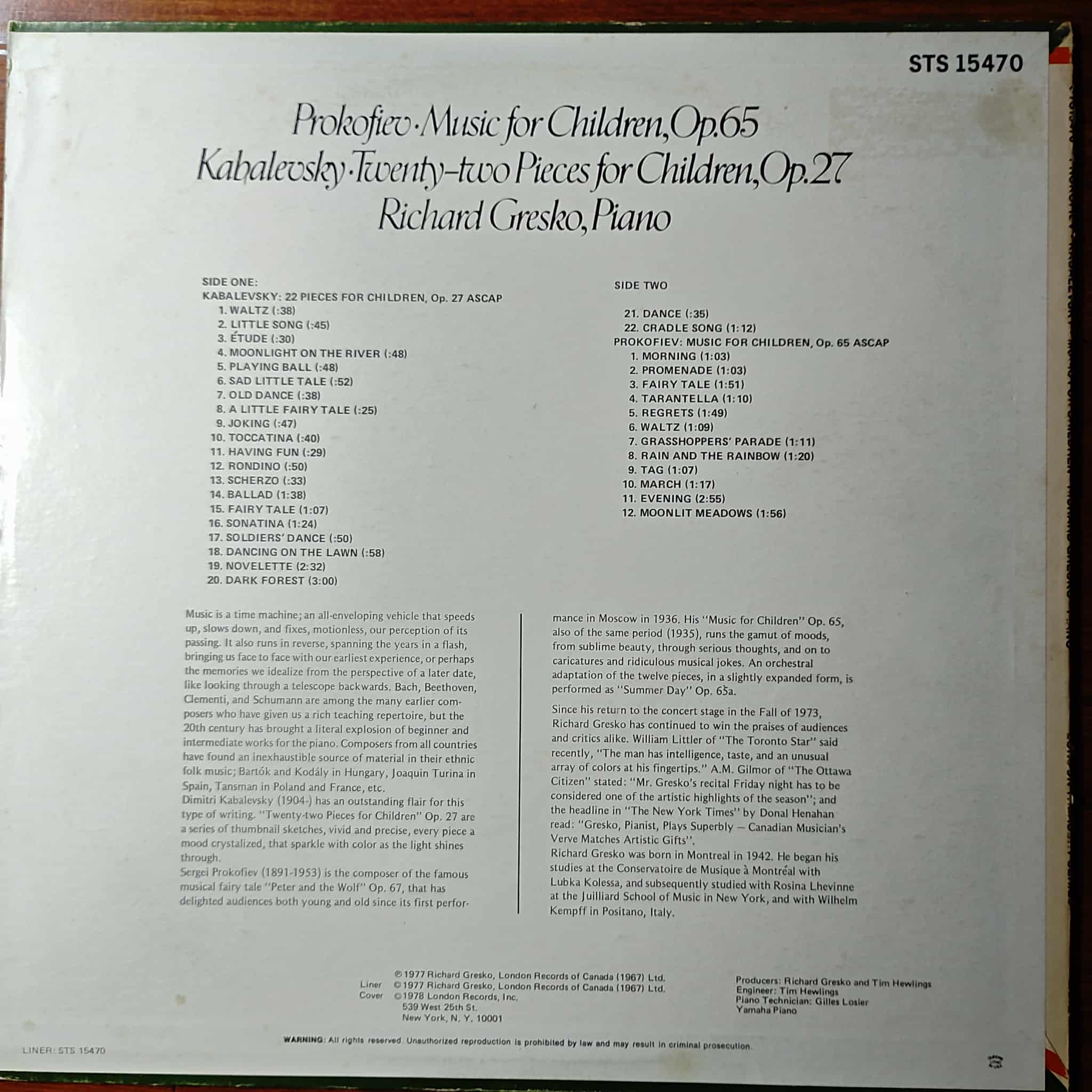 Piano cổ điển viết cho trẻ em của 2 nghệ sĩ nhân dân / nhà soạn nhạc xuất chúng của Xô Viết cũ Dmitry Kabalevsky & Sergei Prokofiev, trình diễn bởi nghệ sĩ piano người Canada Richard Gresko – Music For Children.