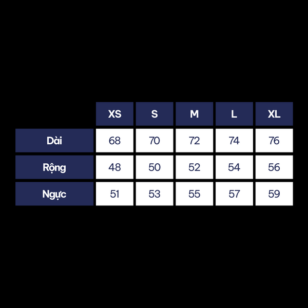 Cỡ áo tham khảo: