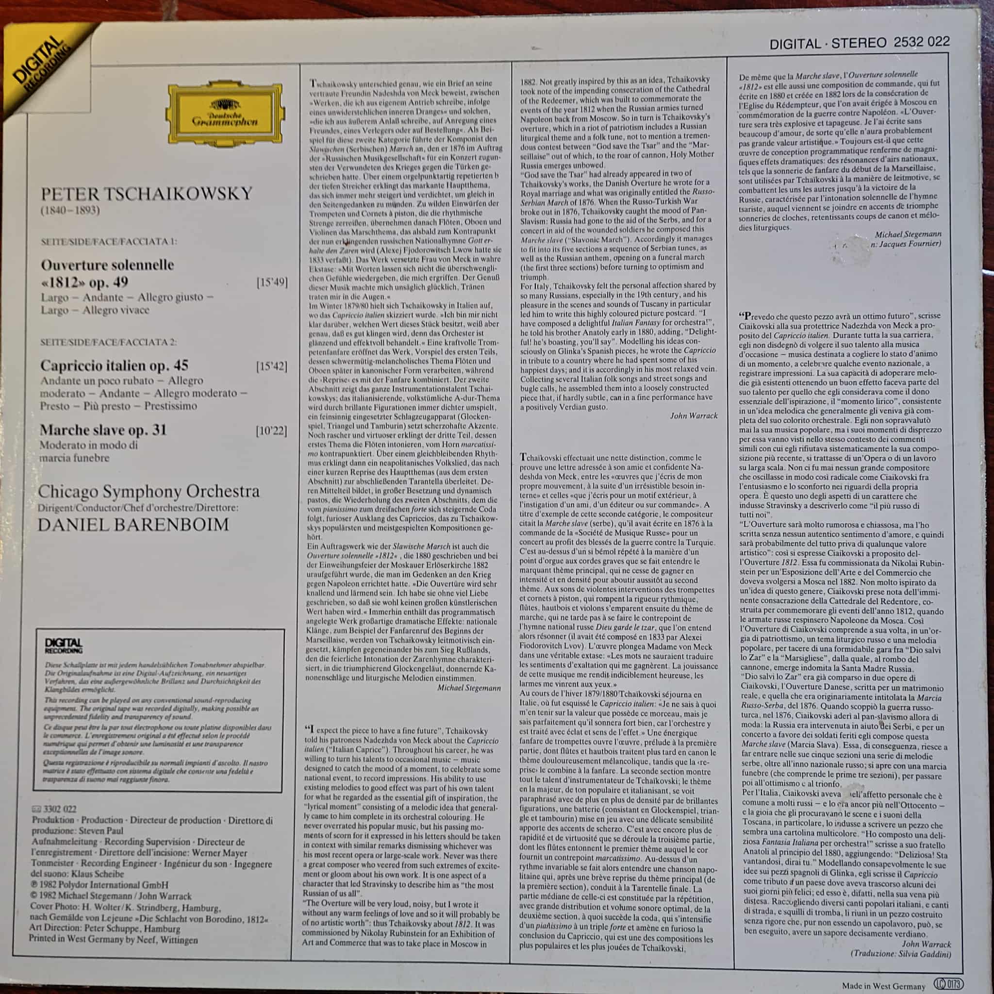 1812 Overture / Capriccio Italien / Marche Slave của Tchaikovsky, bản thu của Daniel Barenboim và dàn nhạc Chicago Symphony Orchestra.