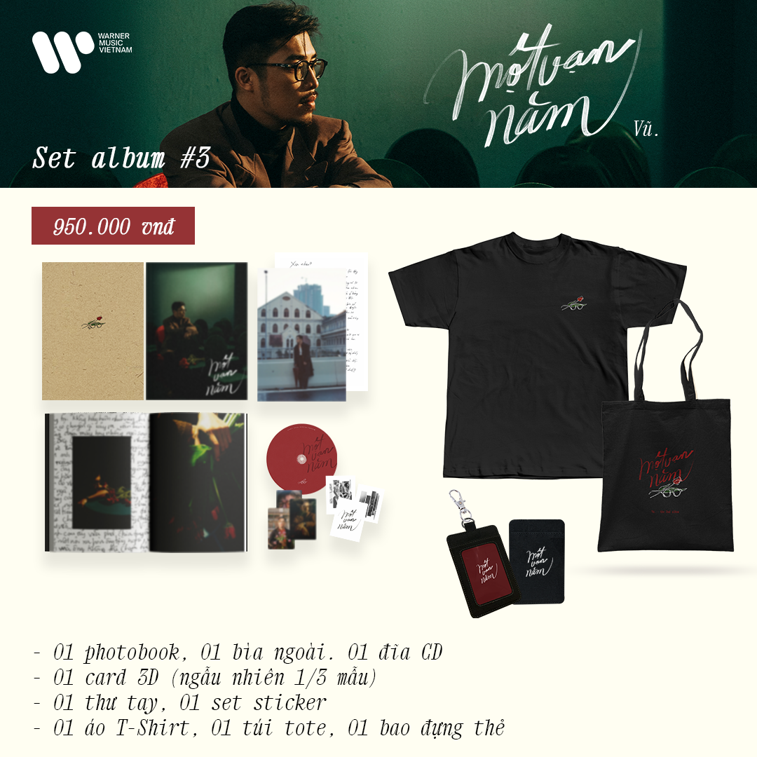 Set album #3 bao gồm: 01 photobook, 01 bìa ngoài, 01 đĩa CD, 01 card 3D (ngẫu nhiên 1/3 mẫu), 01 thư tay, 01 set sticker, 01 áo T-Shirt (tham khảo số đo phía bên dưới), 01 túi tote, 01 bao đựng thẻ.
